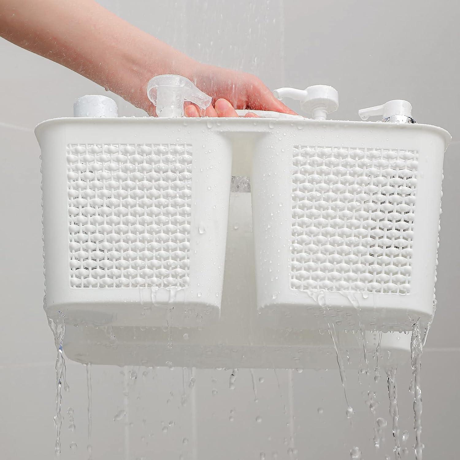UUJOLY Plastic Portable Shower Caddy Bucket, Cleaning Shower Basket with Handle Compartments Storage Organizer for Bathroom Kitchen College Dorm Sink, Grey(White)