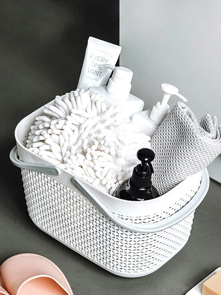 UUJOLY Plastic Organizer Storage Baskets with Handles, Shower Caddy Bins Organizer for Bathroom and kitchen(White)(Pink)